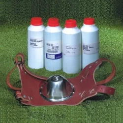 A robust halter fitted under the bull’s chin for identifying what cows have been mated with which bull. The halter has a stainless steel cone-shaped marker unit, filled in with your preferred colour, that acts as a ball point pen that marks the mounted cow. It is ideal for identifying cows in heat for artificial insemination or dry cows and for indicating the activity of fertile bulls.